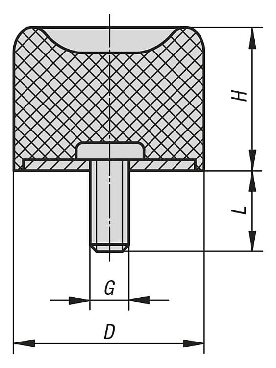 Note: The rubber buffers are widely-used construction elements for elastic mounting. They are used, among other things, as mountings for aggregates, motors, compressors, pumps and testing machinery. Temperature range:-30°C to +80°C.